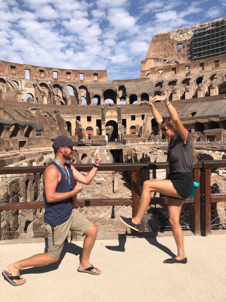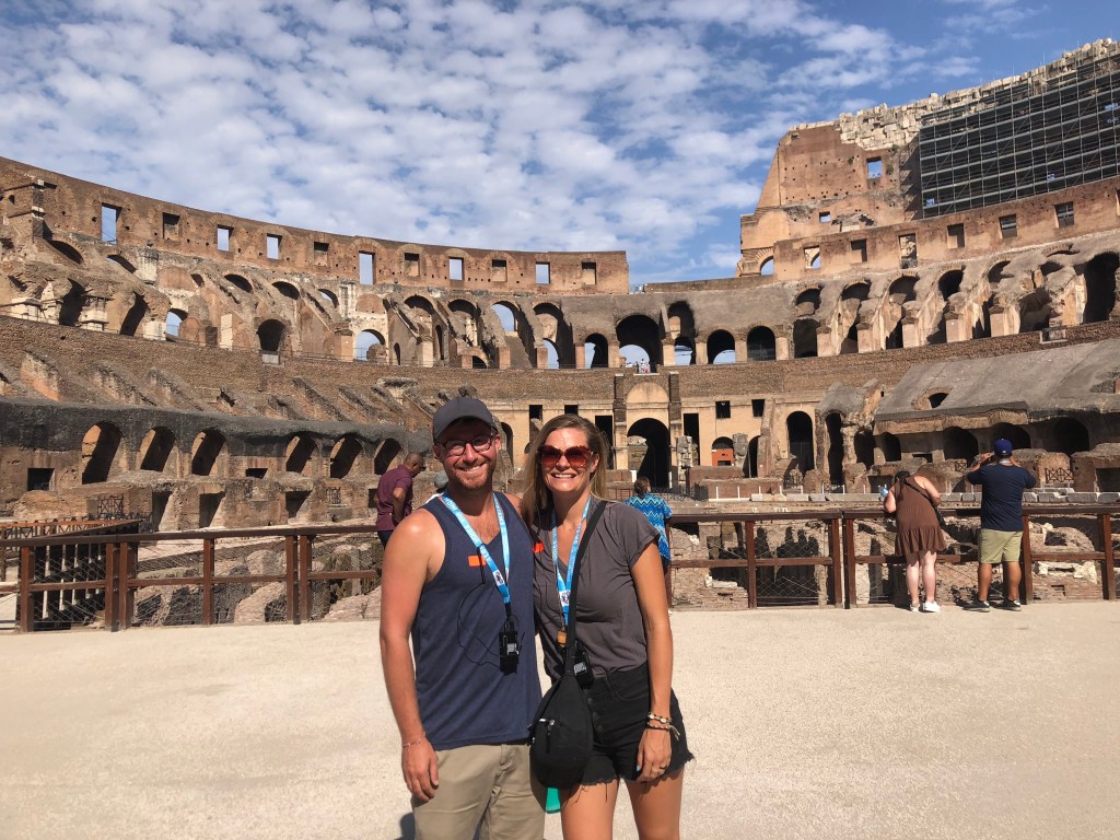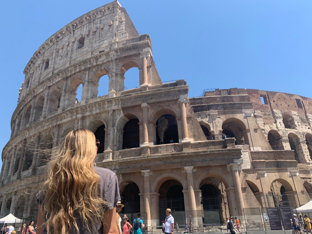 Then it was time to walk to the Colosseum for our 9am tour. It only took about 15 minutes and the path led us through a dry, but pretty, park full of ruins. The tour meet up spot was right next to a water fountain that provided free, cold water. There was even a spigot for sparkling water. My mind was blown. I filled my bottle up with sparkling water but later regretted it because the cap of my bottle exploded off and the water leaked into my bag (nothing damaged though).