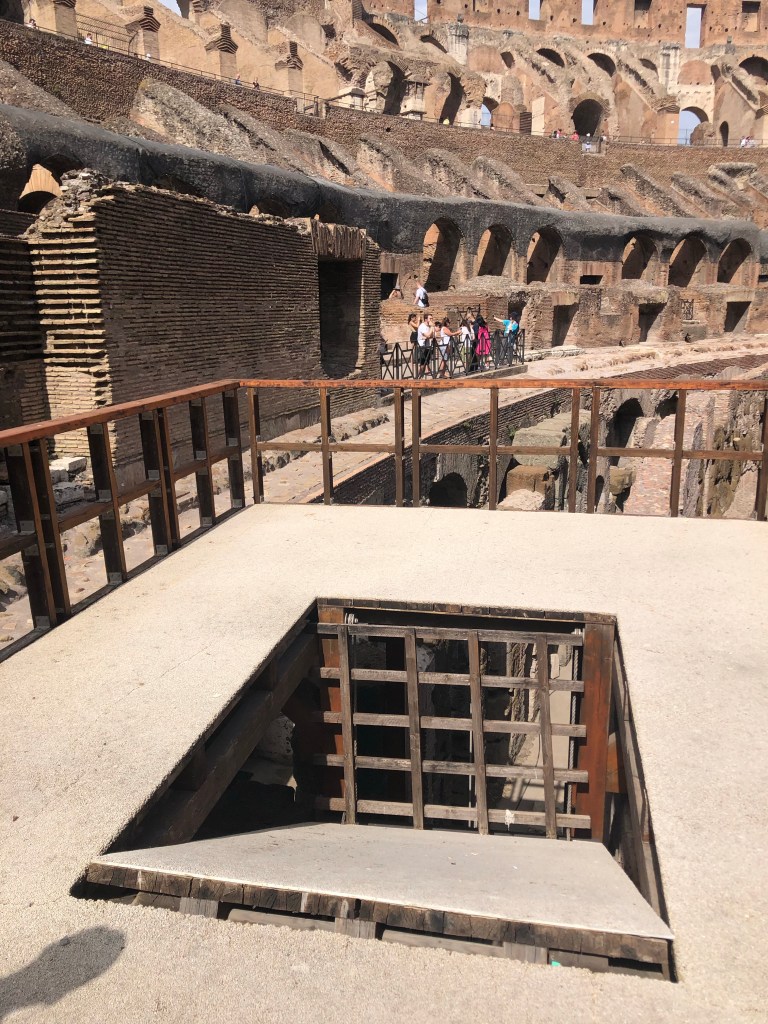 Our guide included entry to the Arena, the floor where gladiators used to fight. Faby told us all about the gladiators and showed us the skeleton foundation for the elevators and trap doors that used to bring gladiators and wild animals onto the stage.