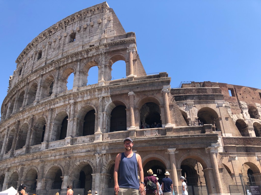 Afterward we walked back around to the Colosseum to get some photos from outside. There were still many tourists milling about which was kind of surprising because it was 96 degrees F. Our energy was zapped quickly so we shuffled back to our hotel to shower and nap and wait for cooler temperatures.