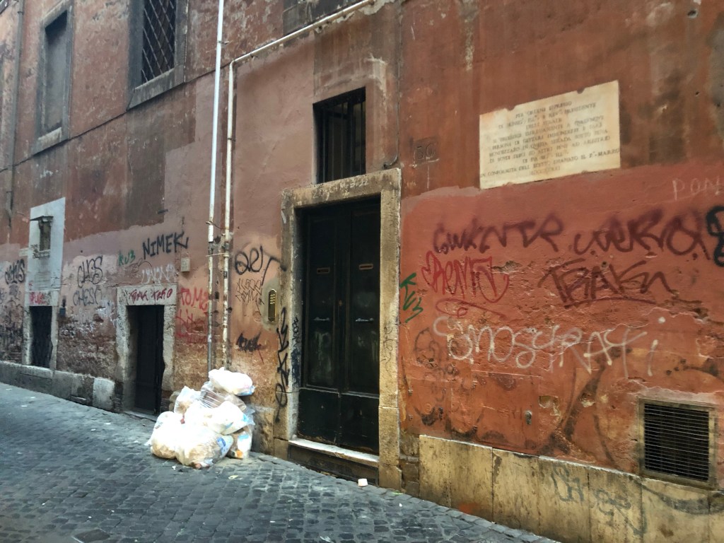 Our guide led us along and told a range of stories about ghosts, prisons, “witches”, executioners and trash. We stopped at one spot where she read a sign in Latin that said ‘do not dump your trash here’ under which was a big pile of trash. Even funnier, while we stood there the garbage truck came and they loaded the bags in because that was a designated garbage spot!
