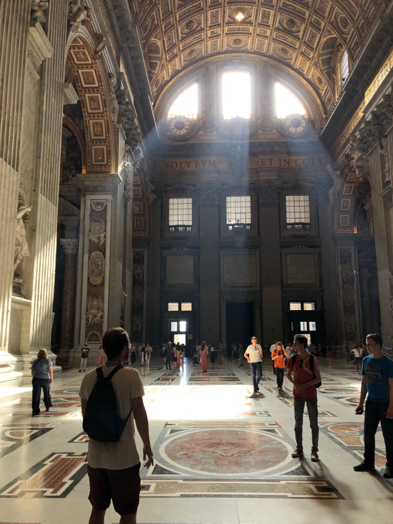 Sara led us down into the crypts where we could see the original church’s foundations and columns and the tombs of popes that did not make it to be Saints, and so could not be buried in the basilica itself. We went back outside and were led to a cafe to buy coffees and snacks before the next part of the tour.