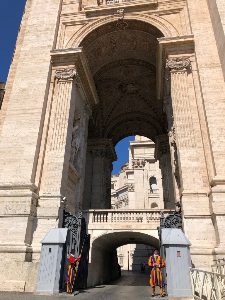 Sara pointed out the Swiss guards, who are guards that were born in Switzerland and specially trained to protect the pope at all costs. They still wear the same red and yellow outfit as was designed in the 1500s to match the house colors of the pope that instated them.