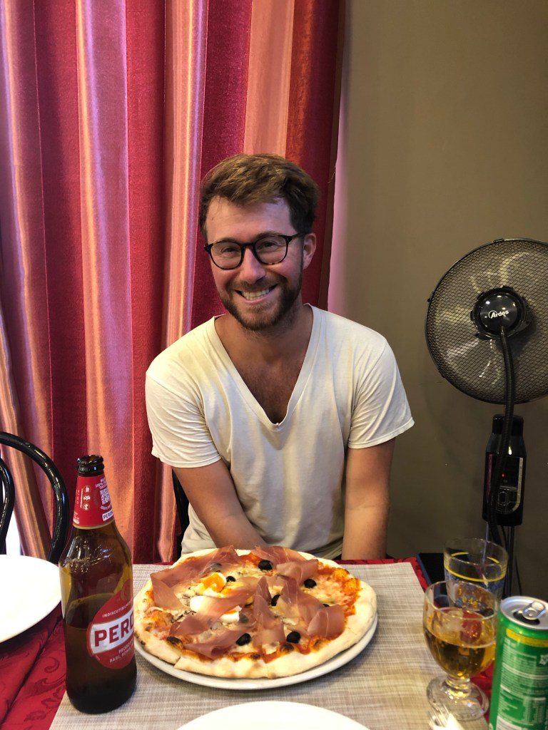 We got to Gusto & Style restaurant and were happy to find it open and staffed with a very nice (Albanian?) family that spoke no English. As we walked in they looked shocked at our appearance and said in Italian “very hot outside!” as they rushed to turn on every fan they owned and point it at us. We got a weird pizza to share (prosciutto, black olive, artichoke hearts, and boiled egg). We took our time eating and were able to kill a couple hours.