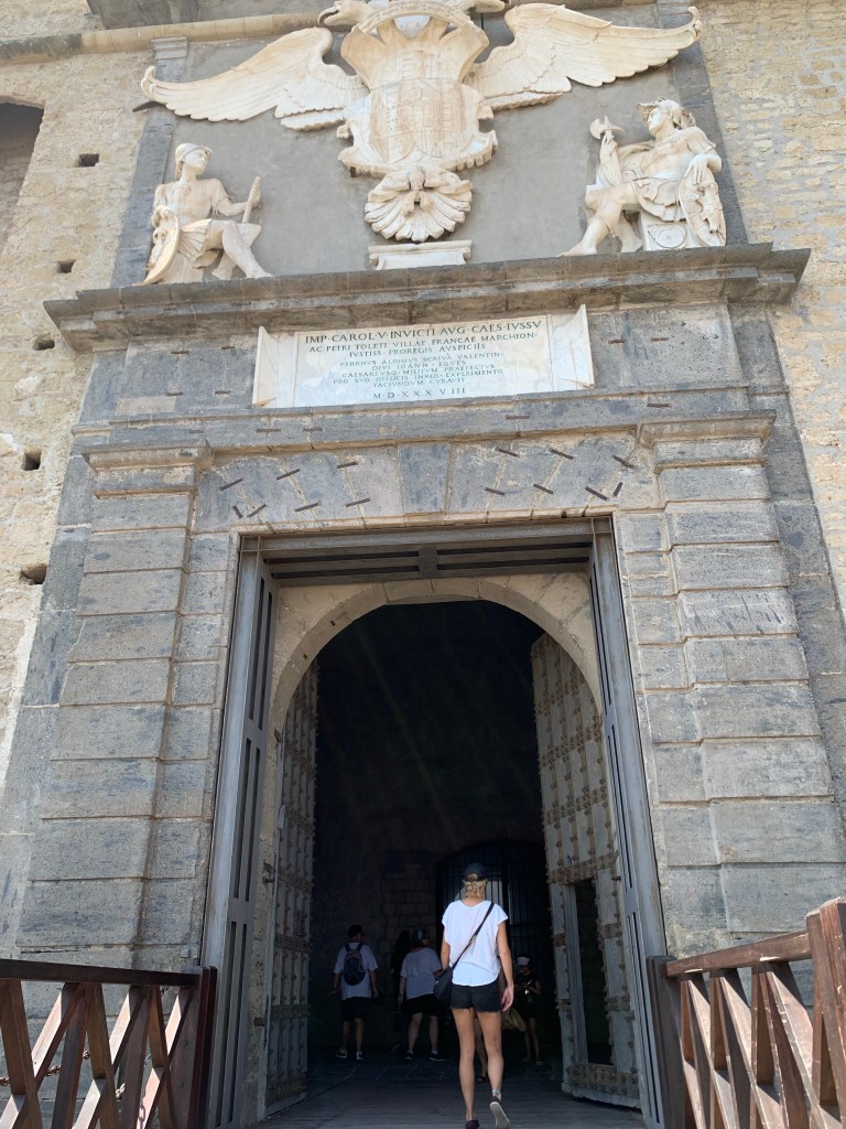 Then we wandered to the Spanish Quarter and then to the funicular station. The funicular is very cute and old and seems to be used by the locals pretty regularly as a way of not having to walk up and down the big hill. We got it all the way to the top and then followed a family of tourists to the entrance of Castel Sant’Elmo.